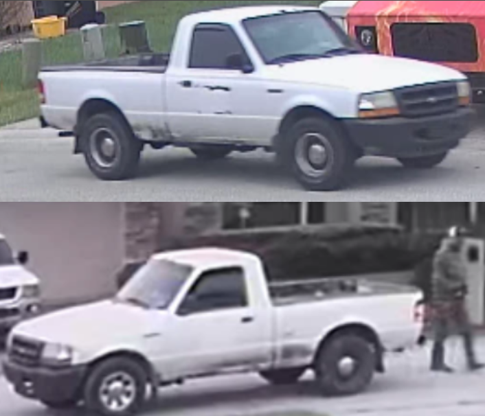 Security video revealed at least two suspects pulling up to the residence in a white pickup truck (possibly a Ford Ranger). One man got out, while the driver of the truck stayed in and drove away.