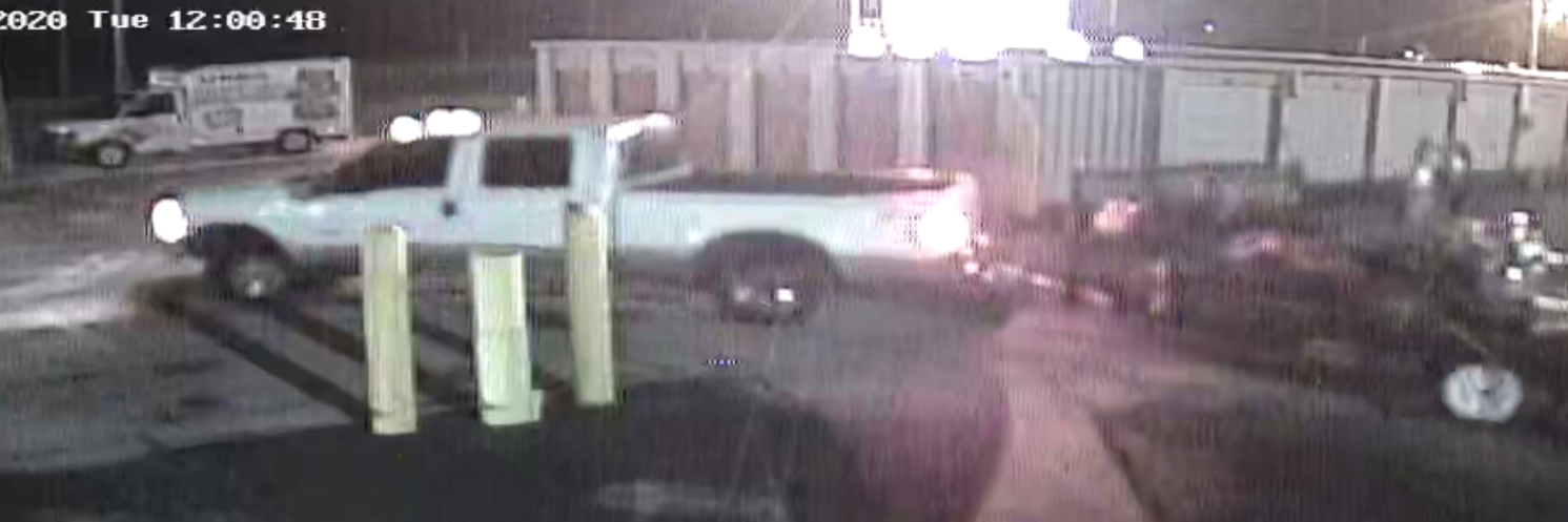 A white, two-tone, Ford F-250 4-door truck (pictured) was observed at all three locations.