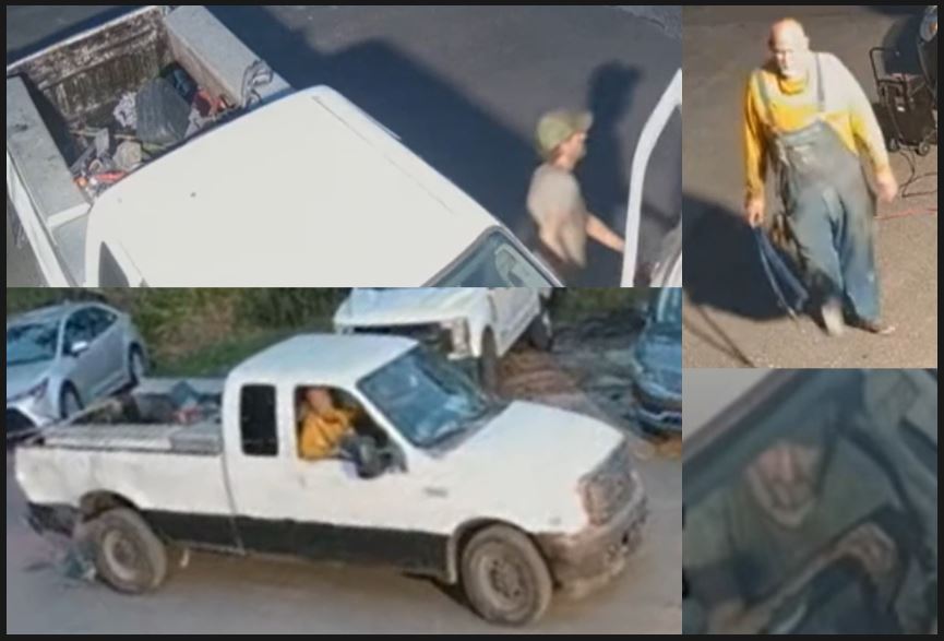 The suspects are both white males in a white and black pick up truck.