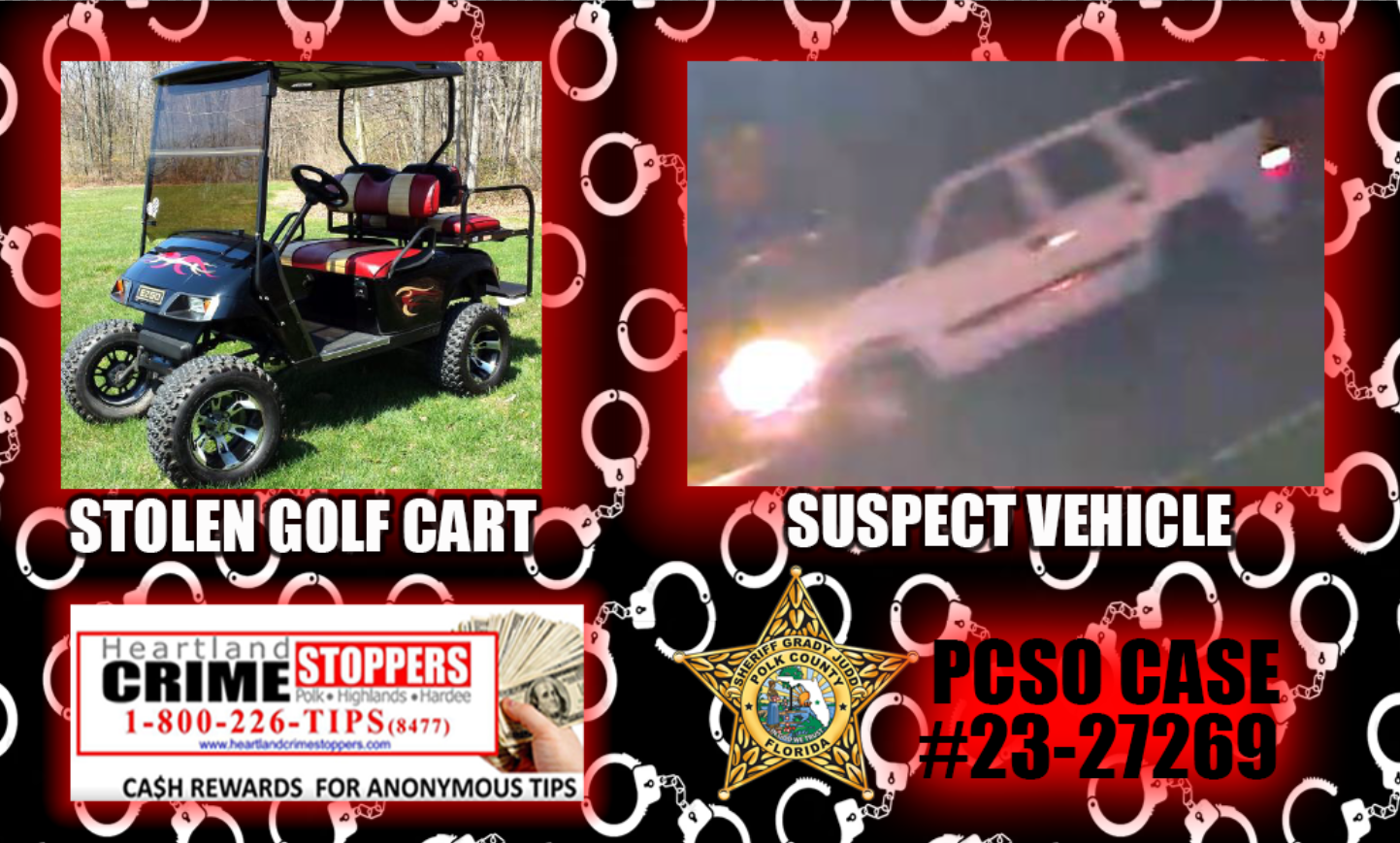 On July 1st at about 1:59 AM, two suspects stole a golf cart from a residence within the Sun Air Golf Community, just off of Watkins Road, east of Dundee.