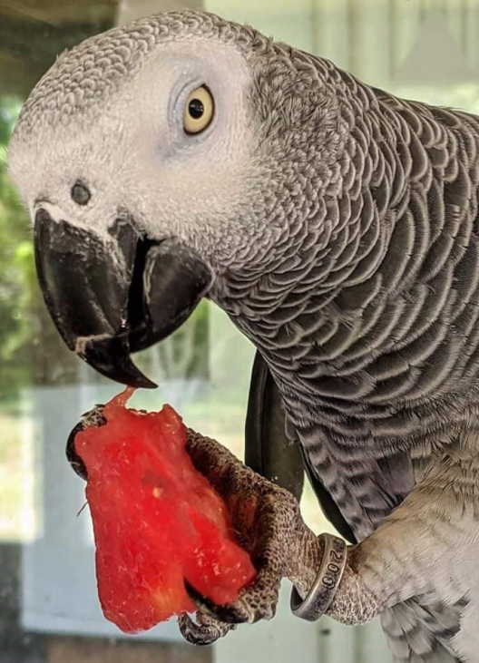 An unknown person entered a screened-in front porch and stole the victim's gray Congo African Grey Parrot named Yoshi.