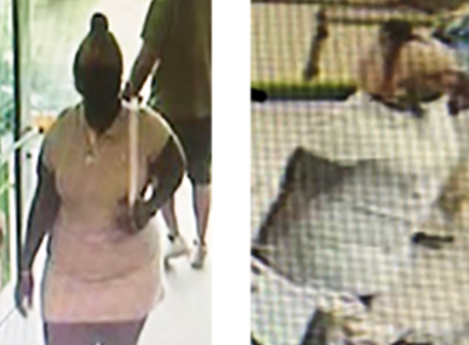 The subject is described to be a heavy set black female with with pink hair, crystals on the bottom row of her teeth and approximately 5’5-5’7.